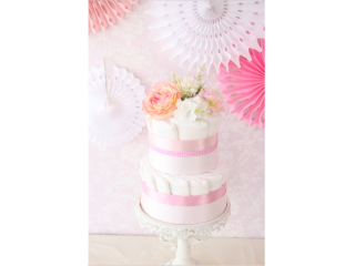 単品 出産祝いやベビーシャワーにぴったり 2段おむつケーキ カラー4色から選択 神戸 大阪 出産祝いのプレゼントに おむつケーキ やベビーシャワーのパーティアイテムを販売しているアトリエプラハルーザ