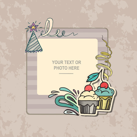 ヴィンテージ背景にフォト フレーム 子供や赤ちゃん 家族 思い出のアルバムのテンプレートです スクラップ ブックのコンセプト ベクトル図です のイラスト素材 ベクタ Image