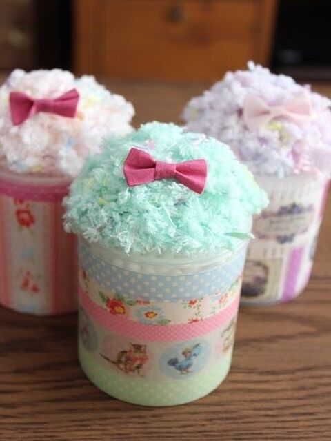 カップケーキみたい 綿棒ケースをマスキングテープ 毛糸ポンポンで可愛くデコ 暮らしニスタ