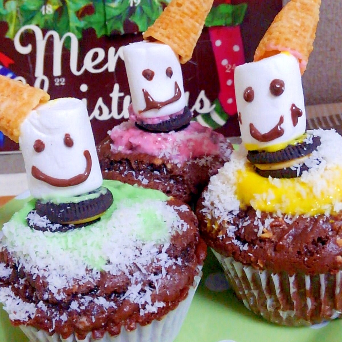 かわいくデコレーション メルティースノーマンのカップケーキのレシピ動画 作り方 Delish Kitchen