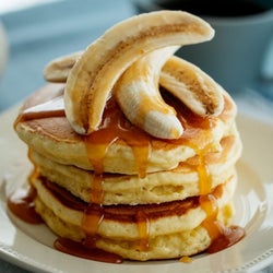 極厚ホットケーキのバナナキャラメルソースがけ 天使のお菓子レシピ 森永製菓株式会社